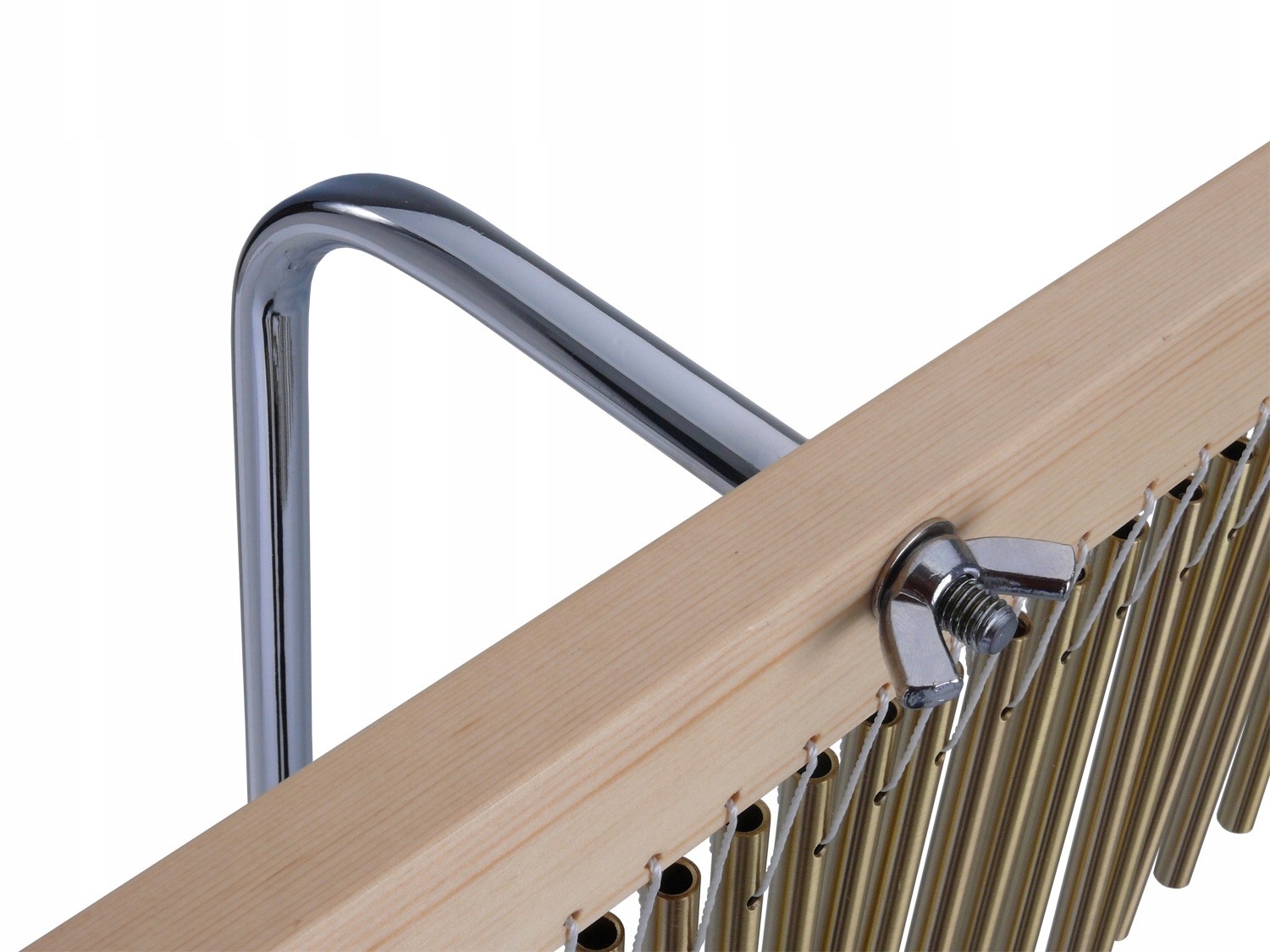 звонит с 36 трубками, однократным, высокочастотным, полным мощным звуком. Ширина 56 см, высота стойки: 75 - 128 см (измерено от земли до верхнего края деревянной ручки)