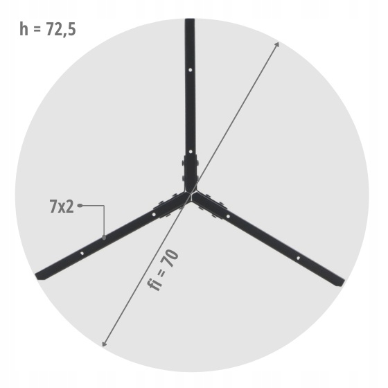 <р> винтовая рама, порошковая покраска <р> сечение ножек: 70х20 мм <р> толщина стенки ножки: 1,2 мм <р> рост: 72,5 см <р> диаметр 70 см <р> ножки отделаны пластиковой стопкойРАЗМЕРЫ