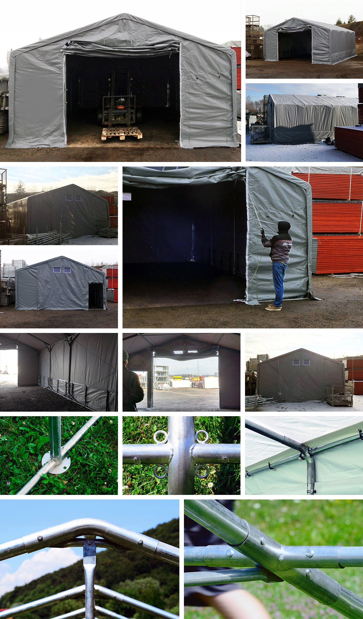 Чехол идеально подходит для хранение различных видов материалов. Его можно использовать как палатку для хранения, промышленную палатку, палатку для мастерской, палатку для маляра, палатку для террасы, военную палатку, гаражную палатку, крышу для парковки или палатку для автомойки. Кроме того, его также можно использовать как торговую палатку, которая может стать мобильной точкой продаж.