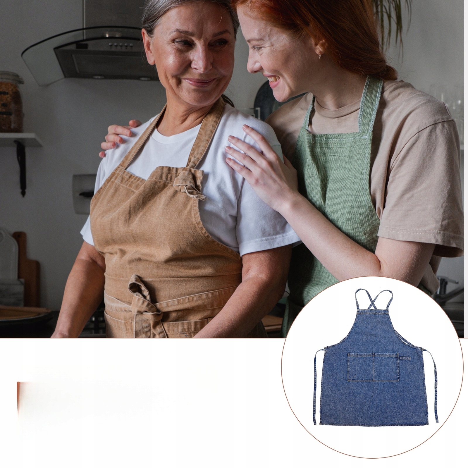 ✅ten Толстый джинсовый фартук идеально подходит для кухни, гриля и использования в студии. Он изготовлен из хорошего материала и имеет удобный карман для ношения небольших инструментов и телефона. Фартук имеет регулируемый ремешок, подходящий для большинства людей. Простой и стильный внешний вид делает его подходящим для различных случаев