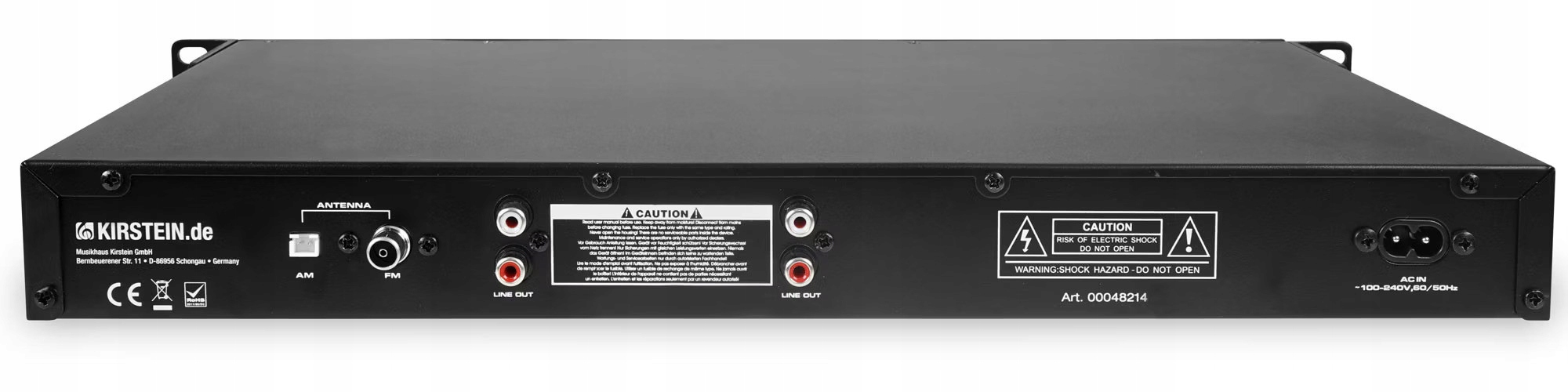 RCA Отдельные выходы для аудио и радиоплета находятся в задней части устройства. Прямо рядом с ним есть соединения для двух прикрепленных антенн. 19 -дюймовое устройство ширины может быть идеально установлено в любой стандартной раме, но при прикрепленных ногах оно также можно использовать в качестве бесплатного устройства.