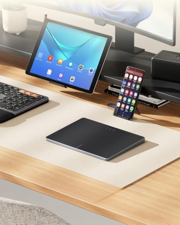 Прочный металлический корпус в сочетании с ультра -высоким дизайном придает устройству элегантный и современный вид. TouchPad оснащен литийной батареей 500 мАч, которая предлагает до 50 часов после полной зарядки, а зарядка выполняется с использованием удобного разъема USB-C