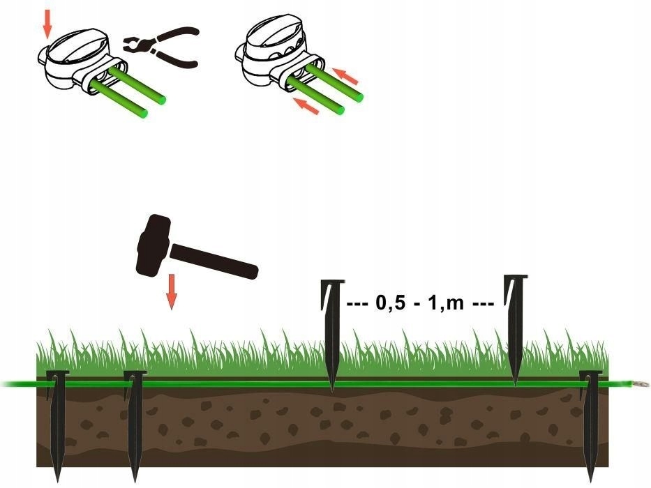 Дополнительно в комплект входят штифты для крепления кабеля, изготовленные из прочного пластика, устойчивого к погодным условиям. Их использование гарантирует, что кабель не будет смещаться и излучаемый им сигнал не будет нарушен.