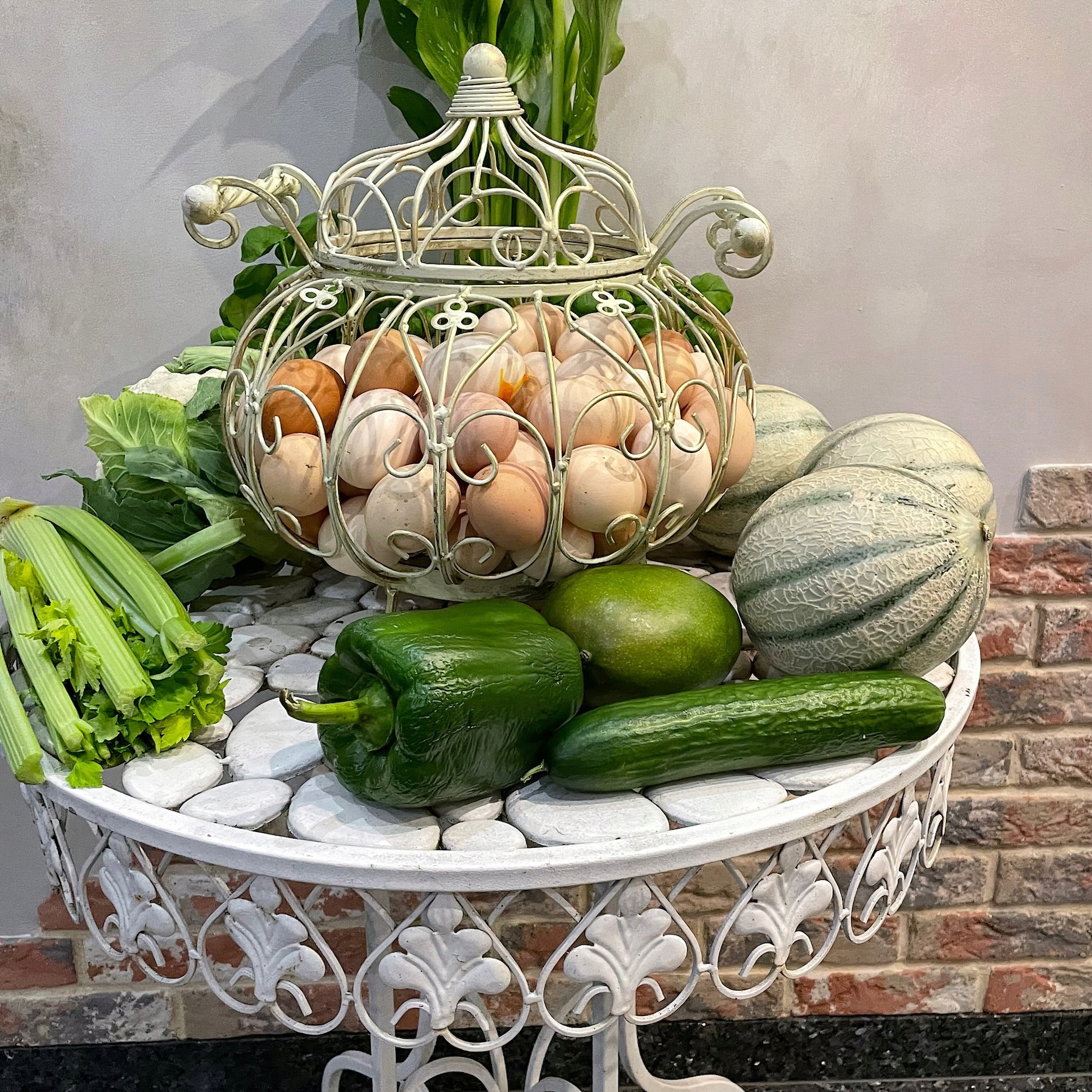 Фруктовое ассорти по-провансальски - белая металлическая корзина, стильное оформление