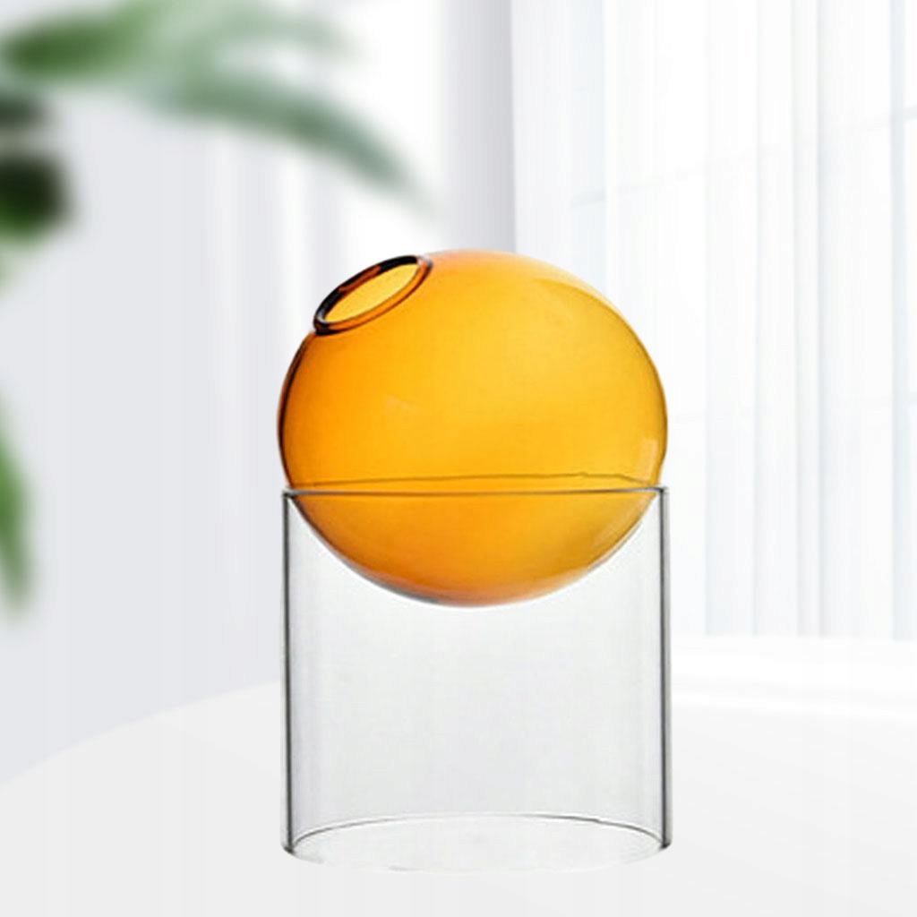 Художественная прозрачная круглая стеклянная ваза Настольный террариум Контейнер для бутонов Горшок для домашнего декора Оранжевый Высокий