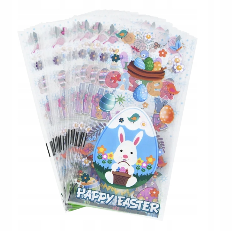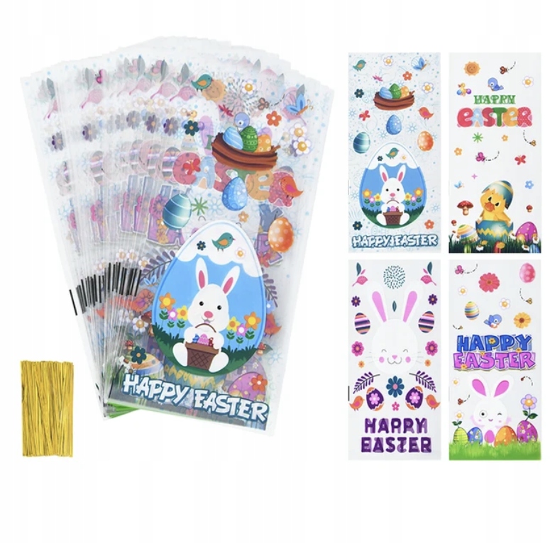 Содержит пакет : Вы получите 100 пасхальных целлофановых мешков. Содержит 100 штук зажимных полос для предотвращения объектов. Отлично подходит для пасхальной радости и добавления праздничной атмосферы. Это незаменимое украшение Пасхи. Но, пожалуйста, не кладите в духовку или микроволновку. Для партийных аксессуаров и подарочной упаковки. Это должен быть лучший способ украсить подарки для семьи и друзей