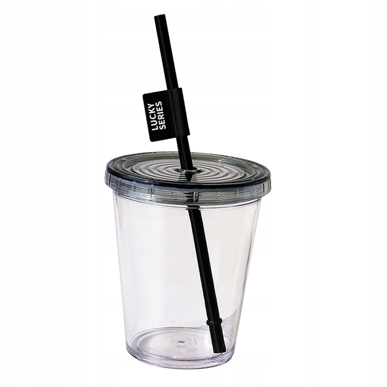 Прозрачная пластиковая кружка с крышкой и соломой