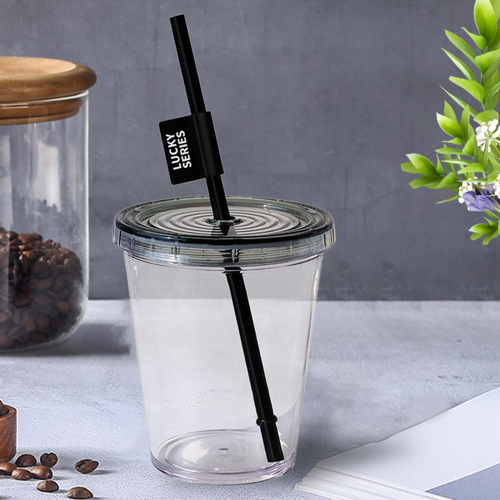 Прозрачная пластиковая кружка с крышкой и соломой для вечеринки по случаю дня рождения Гранд -событие Black