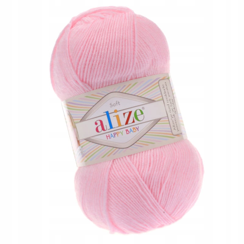Happy Baby – одна из немногих таких нежных ниток во всей коллекции Alize. Мягкий и приятный на ощупь, предназначен для детских товаров. Изготовлен из смеси акрила и полиамида, что в пряжах, предназначенных для этой цели, делает его безопасным для детской кожи. Эти ингредиенты не вызывают аллергических реакций, а также обеспечивают достаточную циркуляцию воздуха. Цветовая гамма не широка, но включает в себя все оттенки детских и пастельных тонов.
