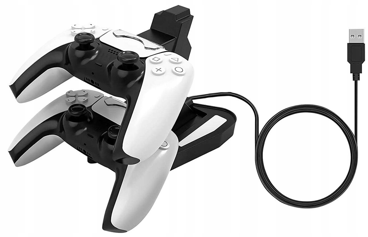 - Микропроцессорное зарядное устройство, посвященное всем официальным контроллерам Dual Sense PlayStation 5. USB - станция может быть размещена на столе или на полке рядом с консоли, что гарантирует некоторую экономию пространства.