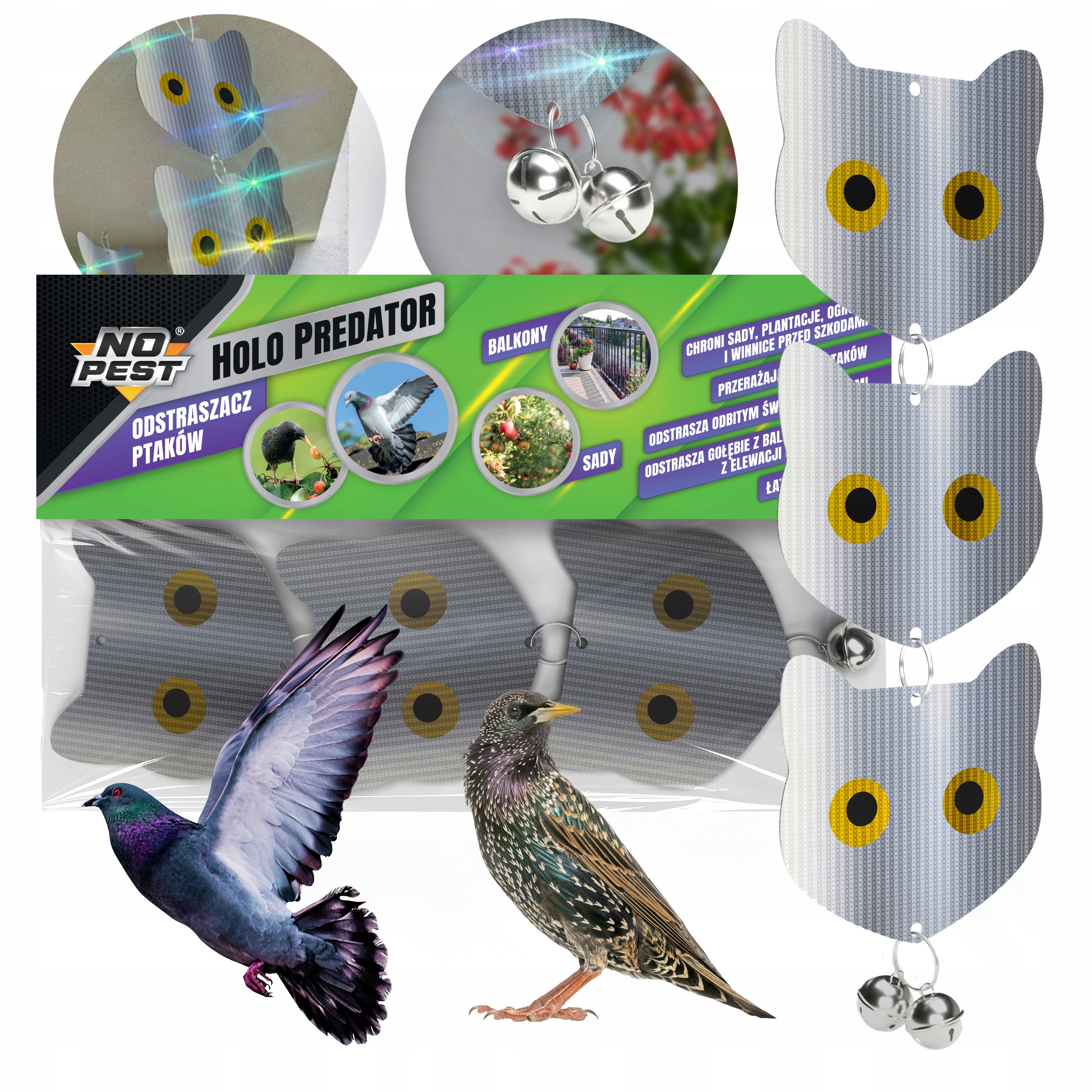 starns and Scithes вращаются вокруг ваших деревьев? Голуби, как ваш балкон? не игнорируй это! выберите вредителя. Макет голограммы млекопитающего поможет защитить сад, балкон или террасу от птичьих вредителей.