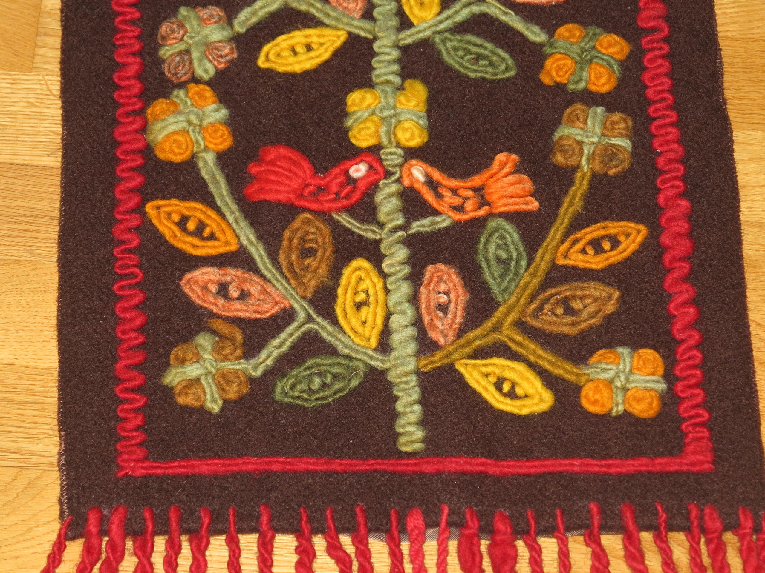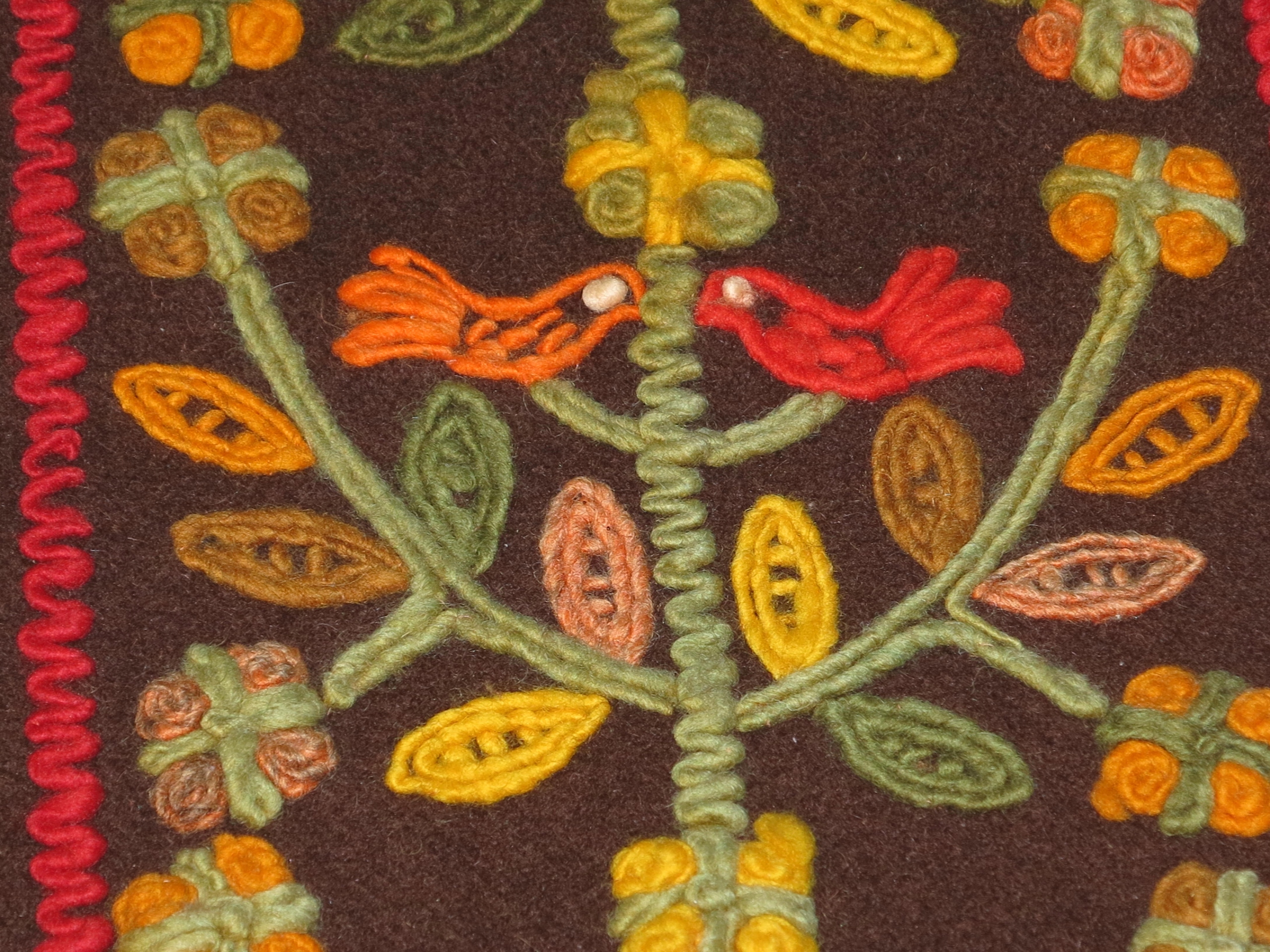 уникальный красивой, теной ручной, народной, чисто шерстяной и длинной стены килема с толстыми полосами-для убийства, вышивка из жира из толстой шерстяной нити- Птицы на дереве