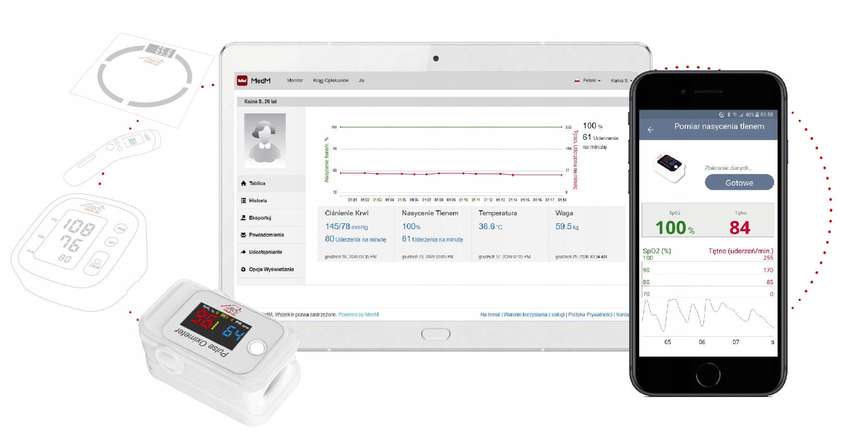 Приложение MedM Health — очень удобный инструмент для автоматического сохранения результатов измерения оксигенации крови и сердечного ритма. Используя приложение MedM Health, вы можете забыть об утомительной ручной записи результатов. Полные результаты измерений всегда будут у вас на смартфоне. Благодаря приложению MedM Health вы можете в любое время отправить полную историю ваших измерений на выбранный адрес электронной почты, например, своему врачу или членам вашей семьи. Вы можете описать каждый результат измерения таким образом, чтобы ваш врач получил информацию о влиянии рекомендованной им лекарственной терапии на результаты ваших измерений.