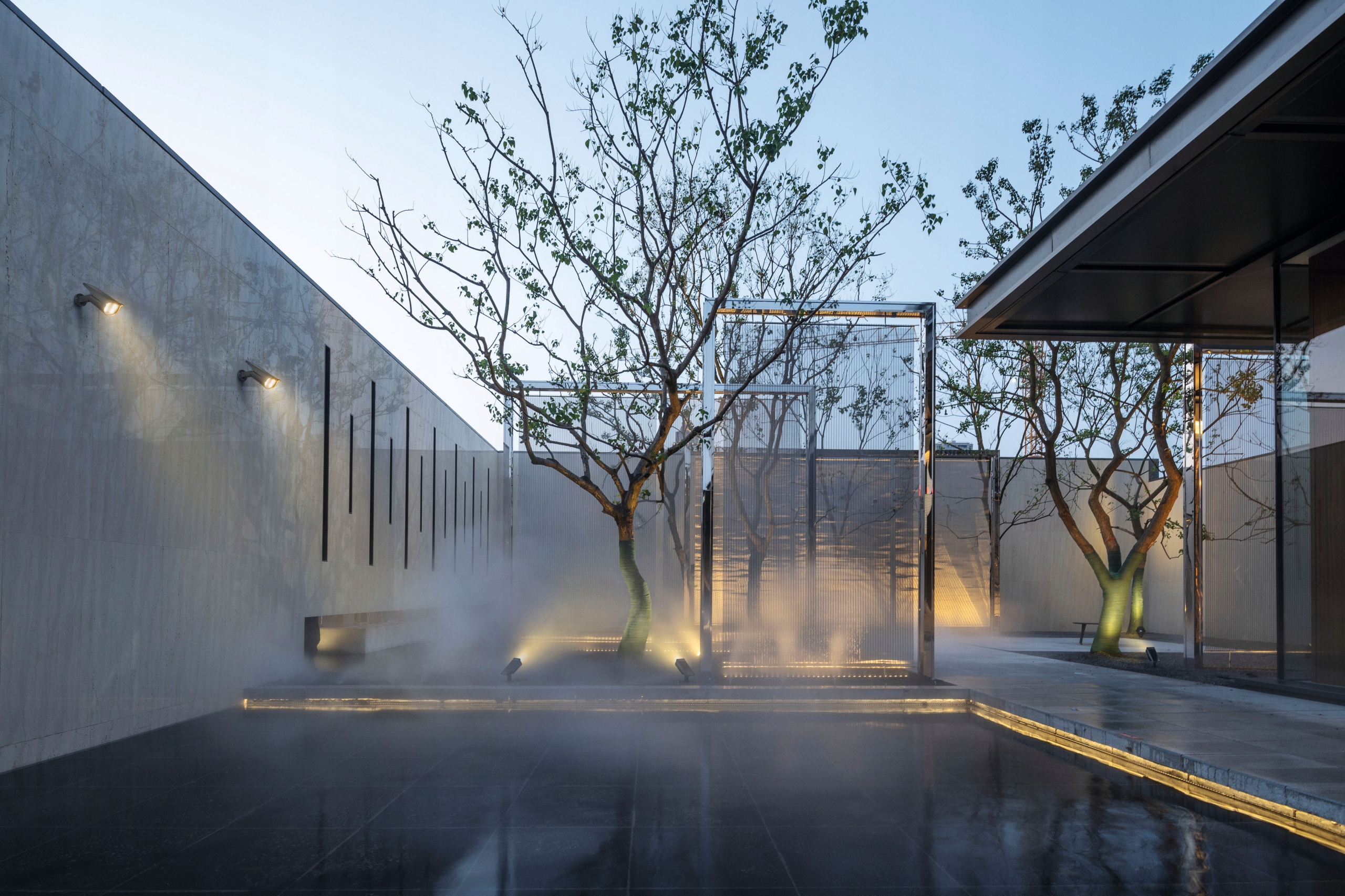 - Освещение садовой стены, сетчатого забора или фасада дома дарит нам незабываемое впечатление игра света и тени.