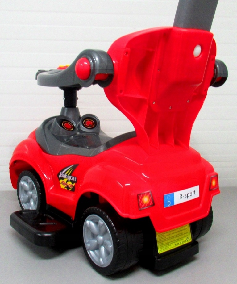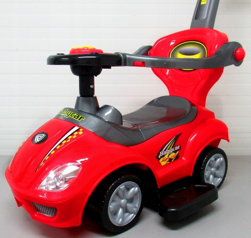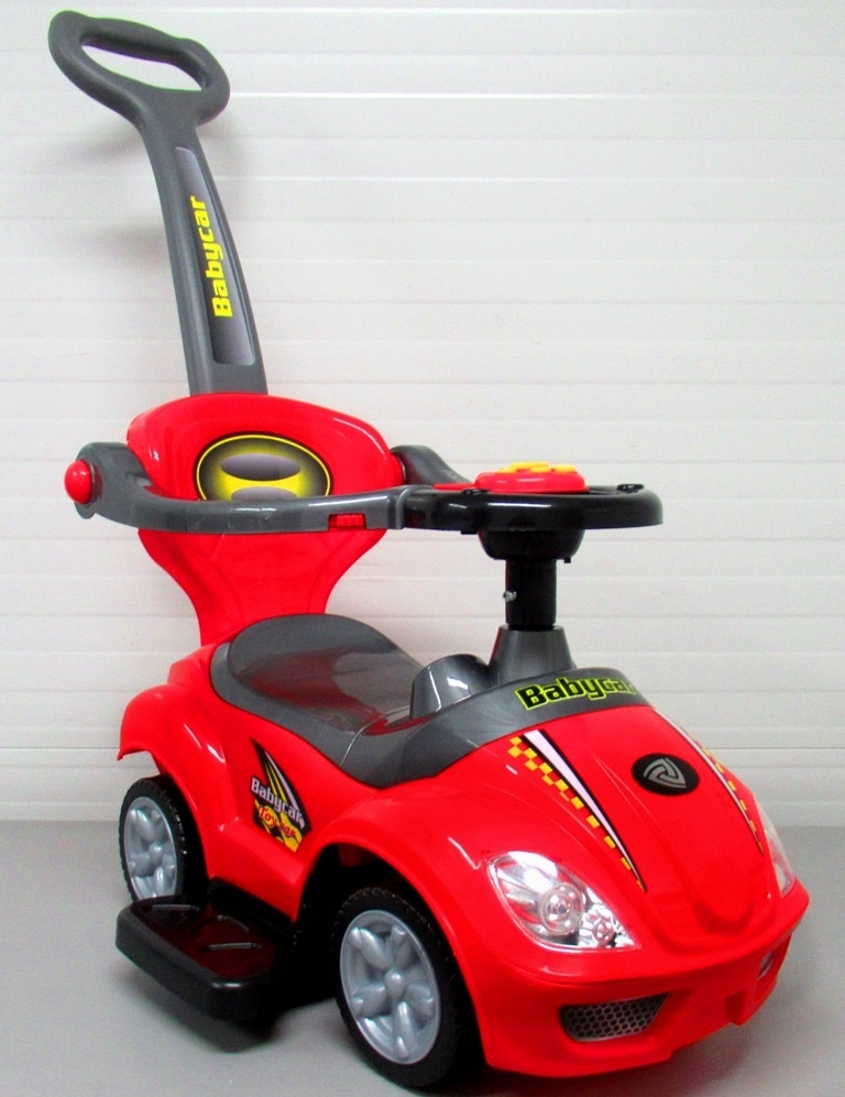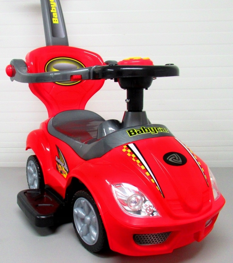 Машинку с барьером безопасности, подставкой для ног и ручкой можно использовать как толкач.
