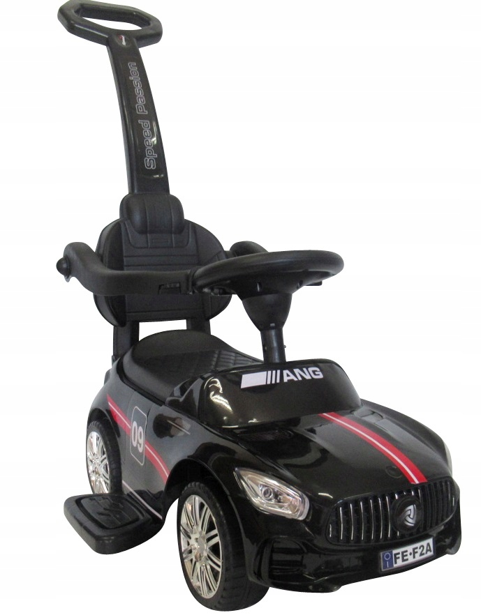 Машинку с барьером безопасности, подставкой для ног и ручкой можно использовать как толкач.
