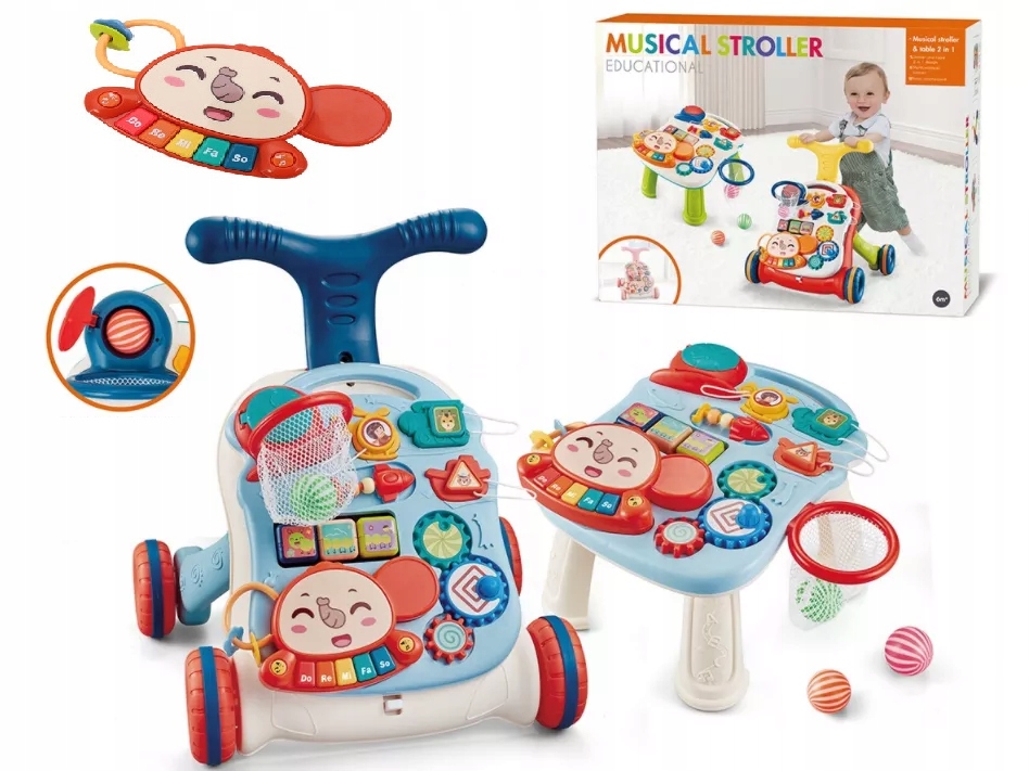 Наш интерактивный продукт сочетает в себе множество функций, таких как: толкатель, учебный стол, съемная основная панель (например, для подвешивания рядом с кроватью или для отдельной игры), съемный игровой игрушечный слон и многие другие. Продукт предназначен для малышей от 12 месяцев. Пушер очень помогает в обучении самостоятельной ходьбе.
