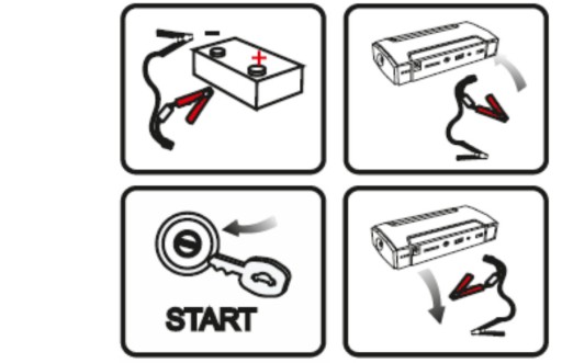Устройство спроектировано таким образом, что каждый пользователь может управлять им. Чтобы завести автомобиль, просто соедините положительный и отрицательный провода кабель к положительному и отрицательному полюсу аккумулятора. Затем подключите другой конец соединительного кабеля ко входу устройства. Поверните ключ в зажигании автомобиля. После запуска автомобиля снимите клеммы аккумулятора.