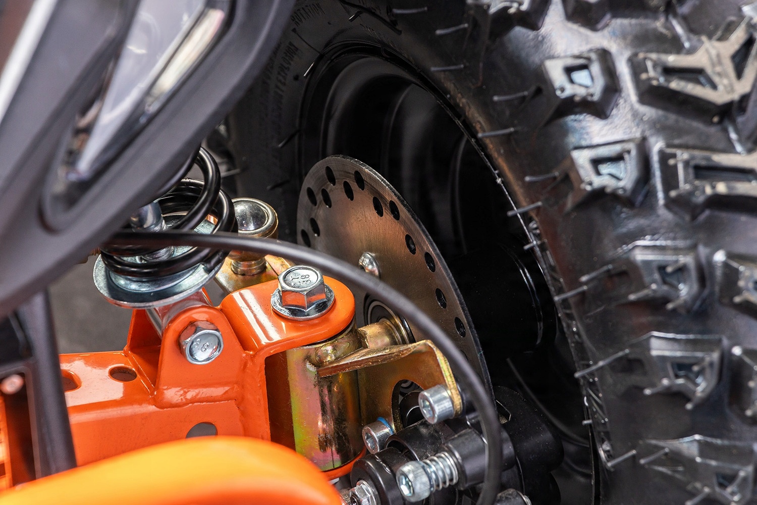 Передняя и задняя подвеска отвечает за комфорт и безопасность вождения: максимальная скоростная блокировка, защитный тип, цепная крышка, передние и задние дисковые тормоза