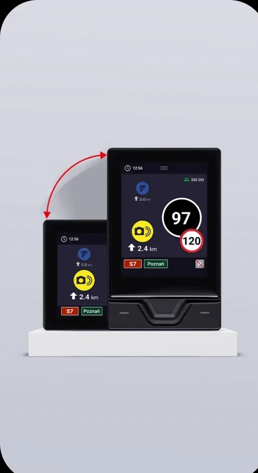 Прикоснитесь, проведите пальцем по экрану и поверните его. Экран в Yanosik RS работает в двух режимах — горизонтальном и вертикальном. Настраивайте раскладку под свои нужды и сохраняйте высокий комфорт использования в дороге.