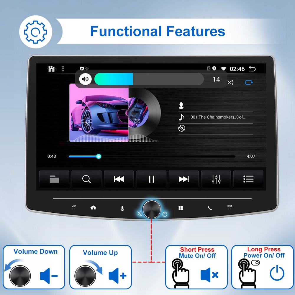 ✅ -cars Android Medical Player, который также поддерживает контроль от функции, инструмент может контролировать коррекцию, изменения эффектов, получение подключения и другие операции, не укладывая руки вниз, чтобы включить экран. Благодаря этому вы можете больше сосредоточиться на вождении автомобиля и быть более безопасным.