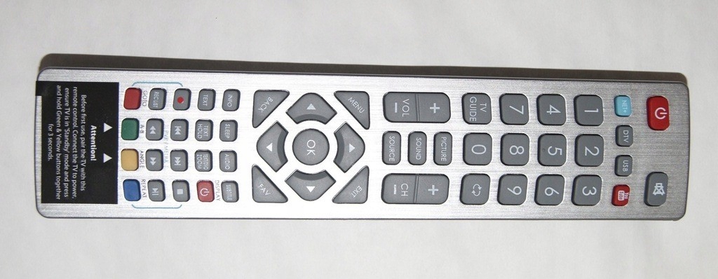 Пульт дистанционного управления должен быть сопряжен с вашим телевизором в соответствии с руководством пользователя телевизора. Обычно это выглядит так: при включенном телевизоре, находясь рядом с техникой, нажимаем одновременно желтую и зеленую кнопки на пульте на несколько секунд. Индикатор питания на телевизоре издаст 5 световых импульсов, что означает, что пульт дистанционного управления и телевизор соединены.