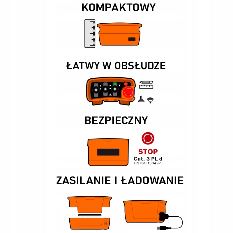 - Безопасно - аварийная кнопка «Стоп» соответствует нормам безопасности для систем с параметрами категории 3 PL d по стандарту EN ISO 13849-1.