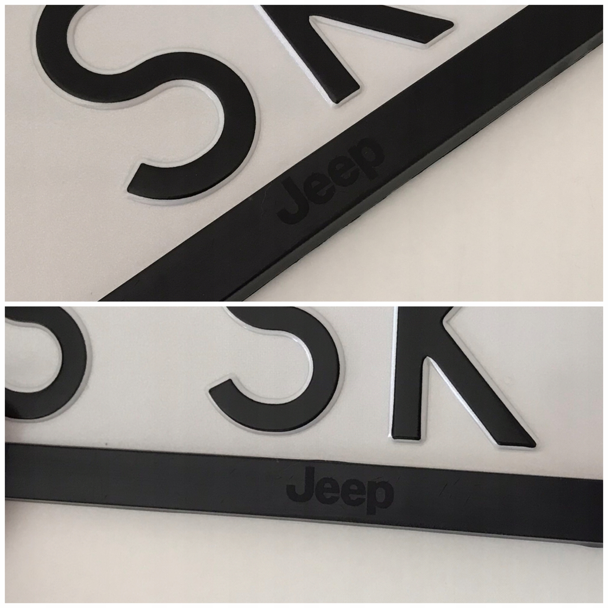 На аукционе выставлена черная рамка номерного знака ЕС с надписью Jeep в различных цветах
