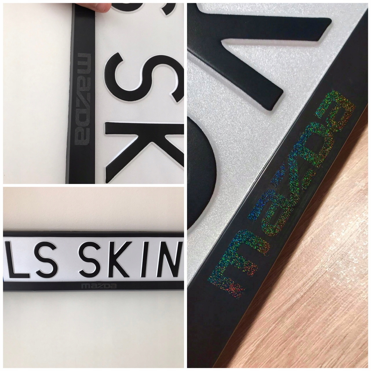 На аукционе выставлена черная рамка номерного знака ЕС с надписью Mazda в цвете на выбор.
