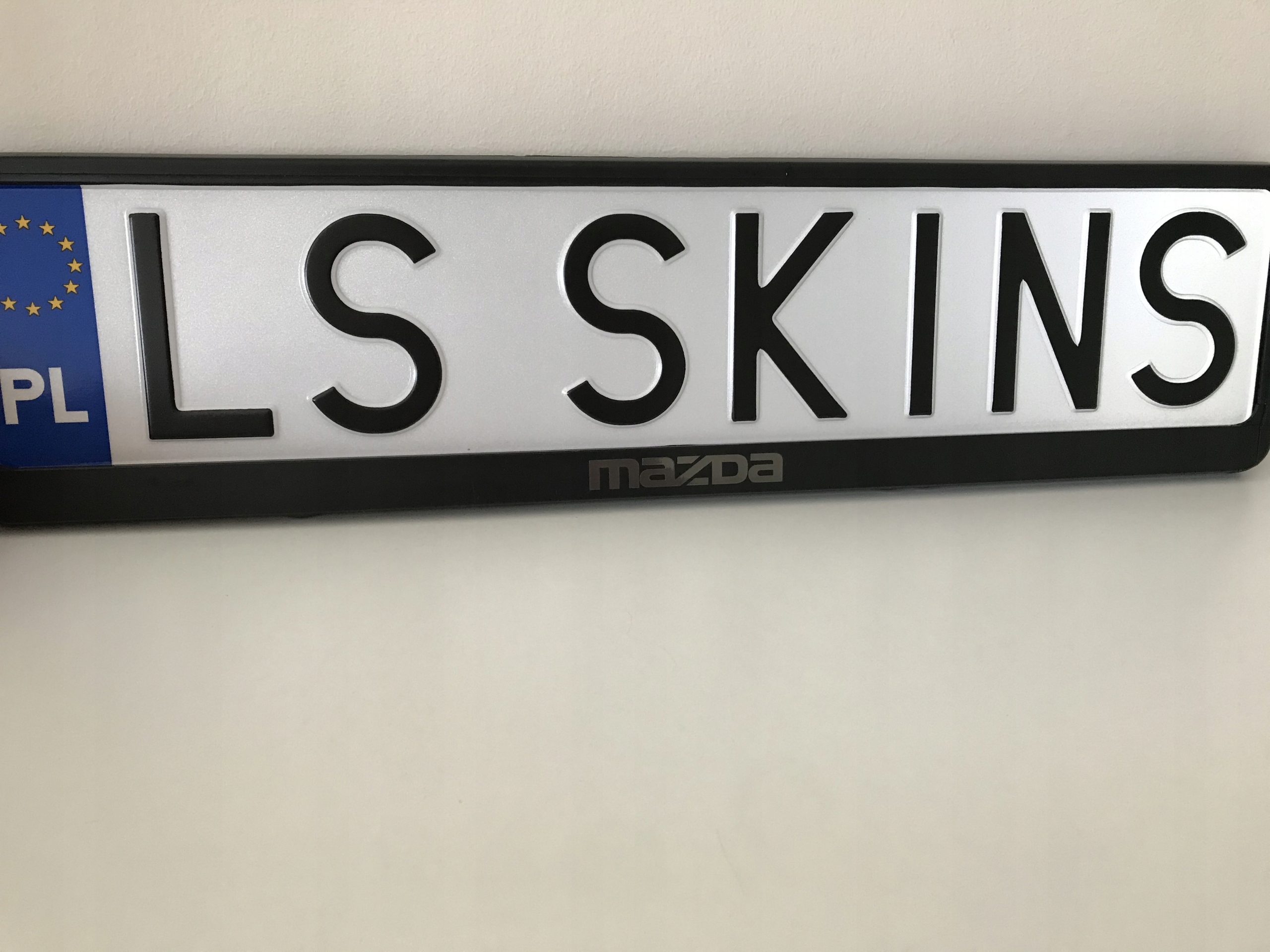 На аукционе выставлена черная рамка номерного знака ЕС с надписью Mazda в цвете на выбор.
