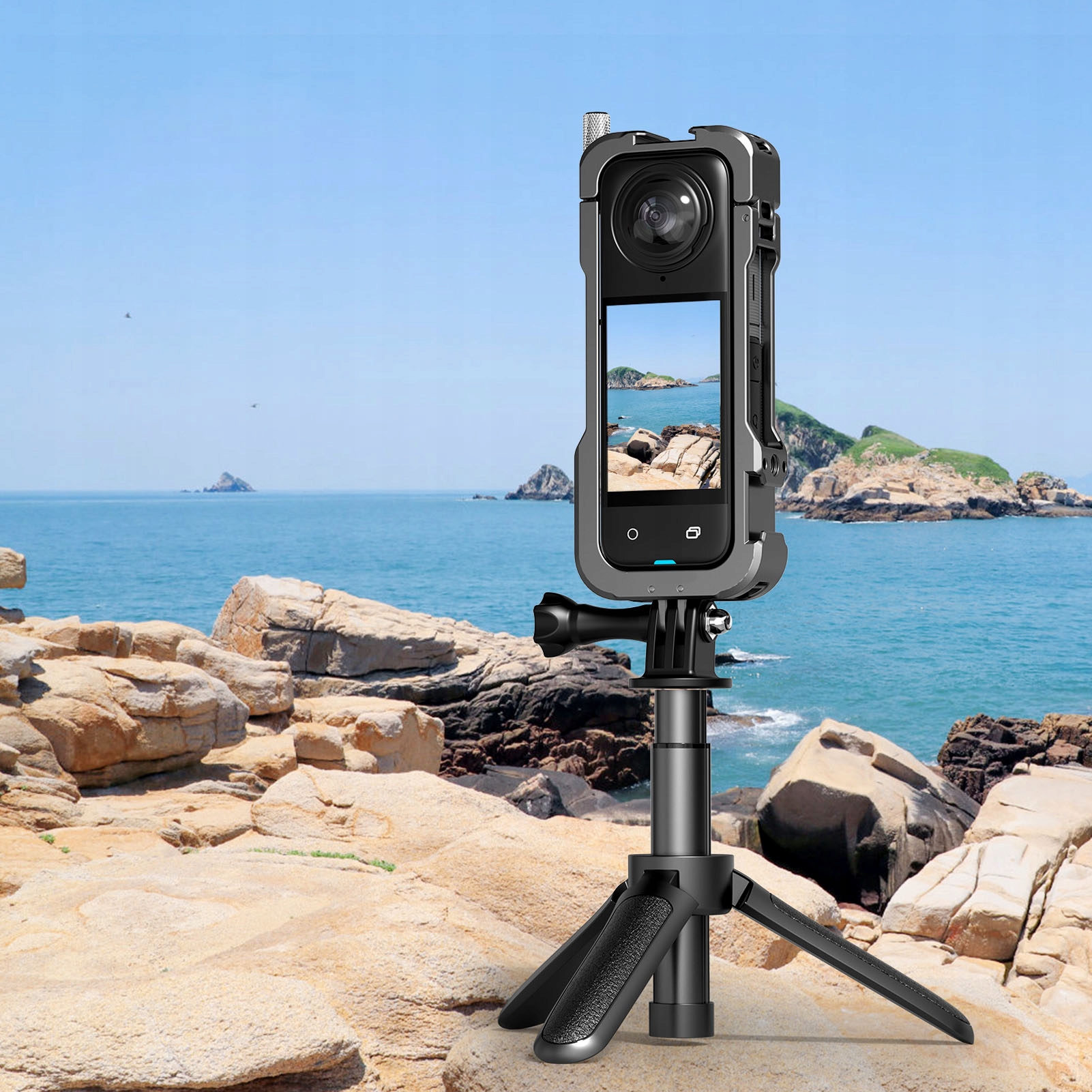 4. МАГНИТНАЯ СКЛАДНАЯ ОСНОВА: внизу имеется магнитный интерфейс для винтовых отверстий экшн-камеры и интерфейс 1/4 посередине, совместимый с большинством штативов.