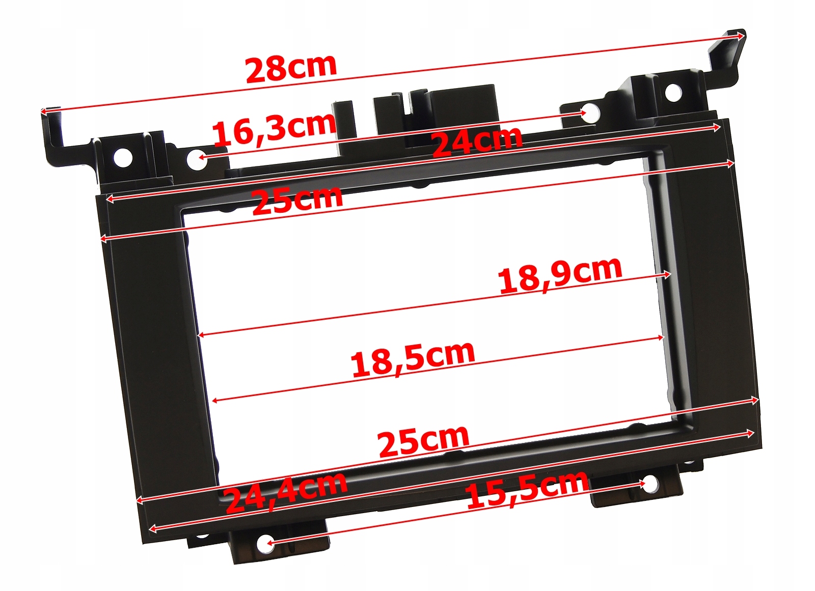 Рамка позволяет легко и эстетично разместить неоригинальный плеер с экраном на месте оригинальной магнитолы, рамка имеет ручки, защелки или отверстия, которые входят в оригинальные места крепления.