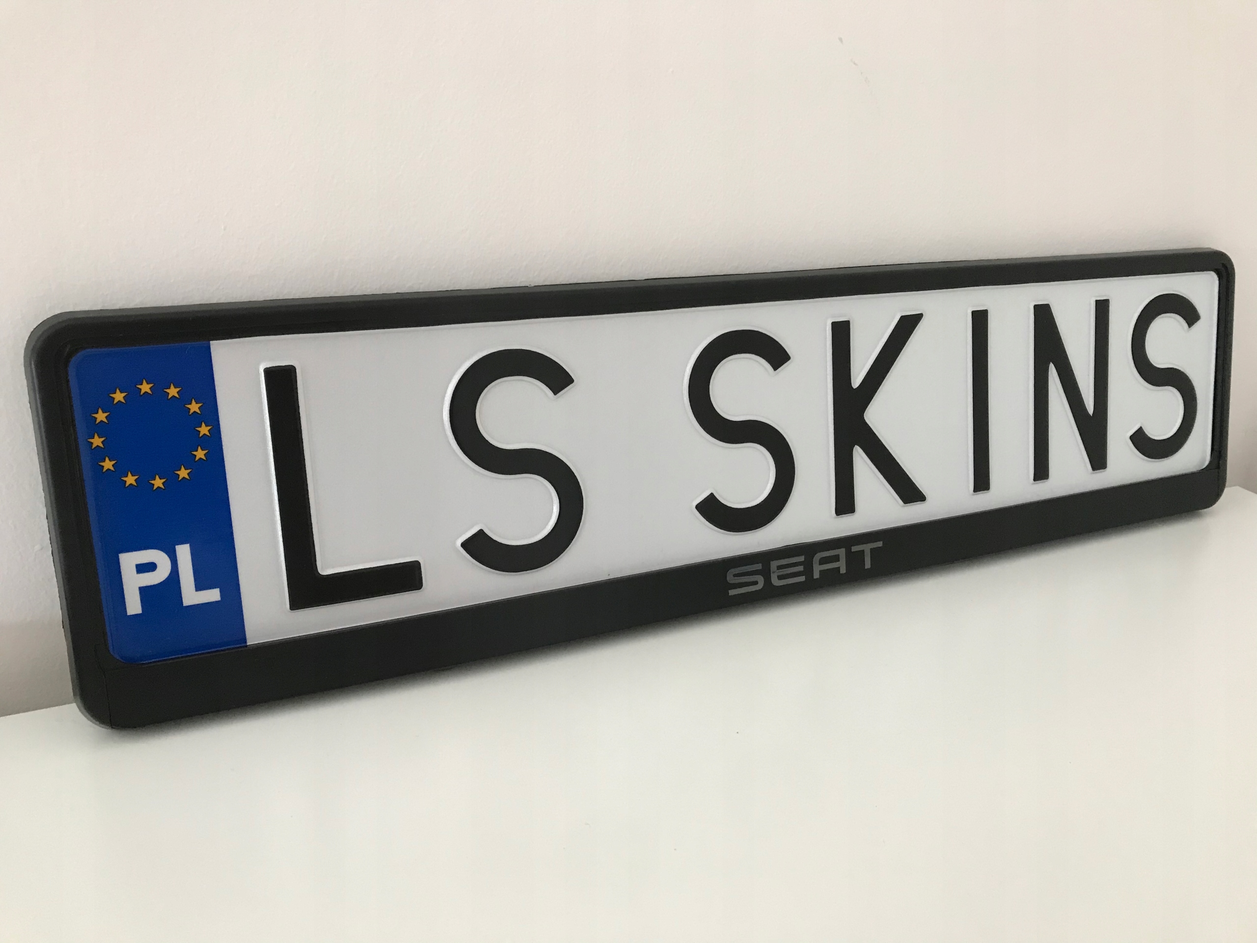 На аукционе выставлена черная рамка номерного знака ЕС с надписью Seat в различных цветах.