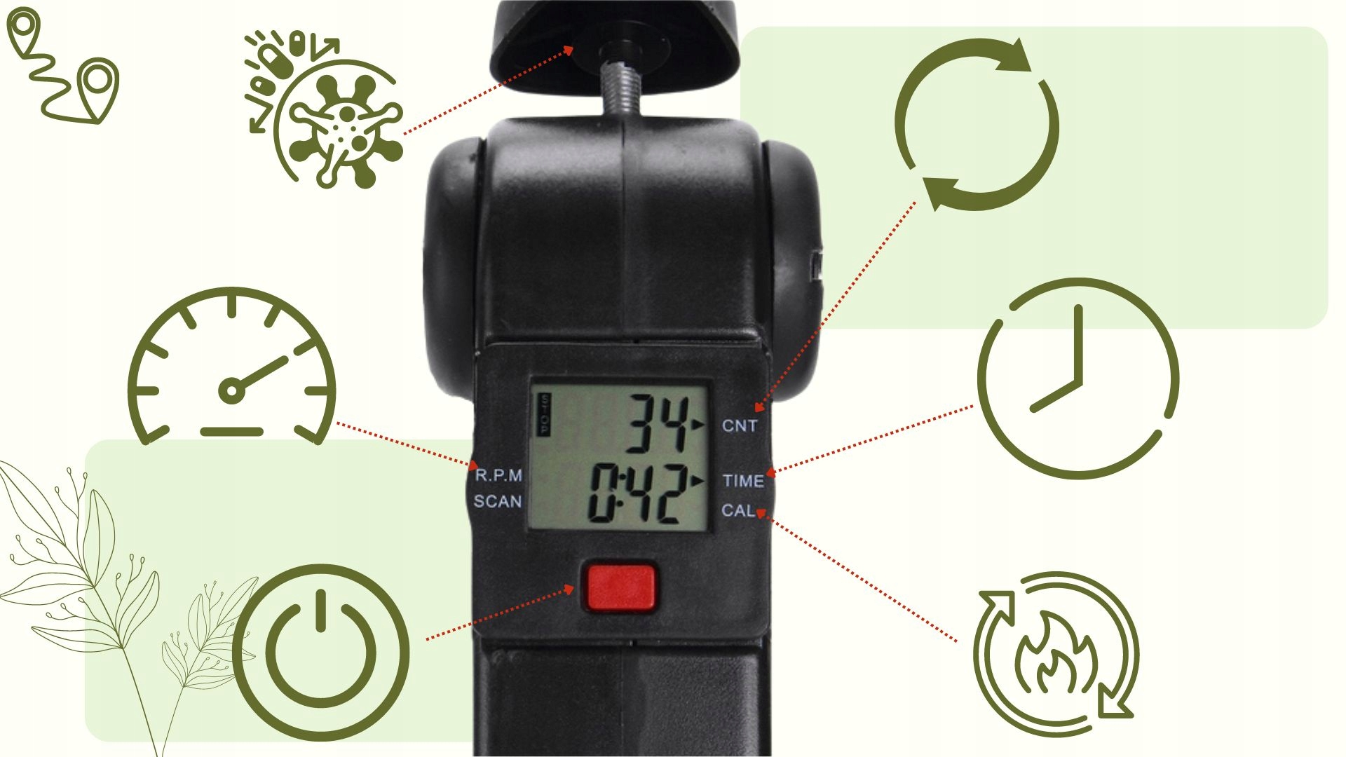 - ✅ ЖК-дисплей (время, обороты в минуту, общее количество оборотов, калории)