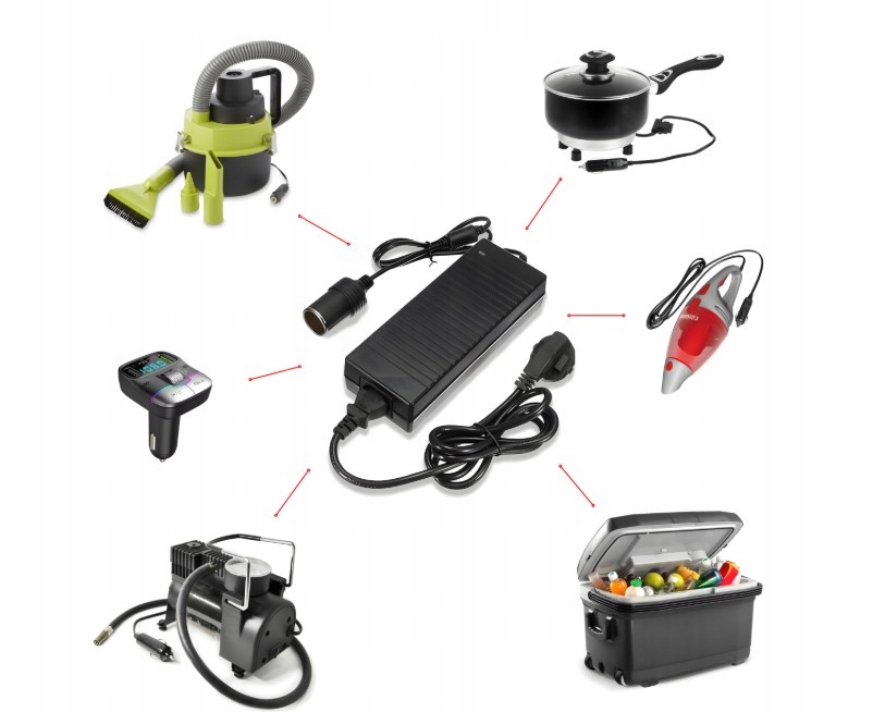 Питание можно использовать дома, автомобиля, мастерской или во время путешествия. Подходит для питания туристических холодильников, светодиодных полос, зарядных устройств, а также других устройств 12 В: