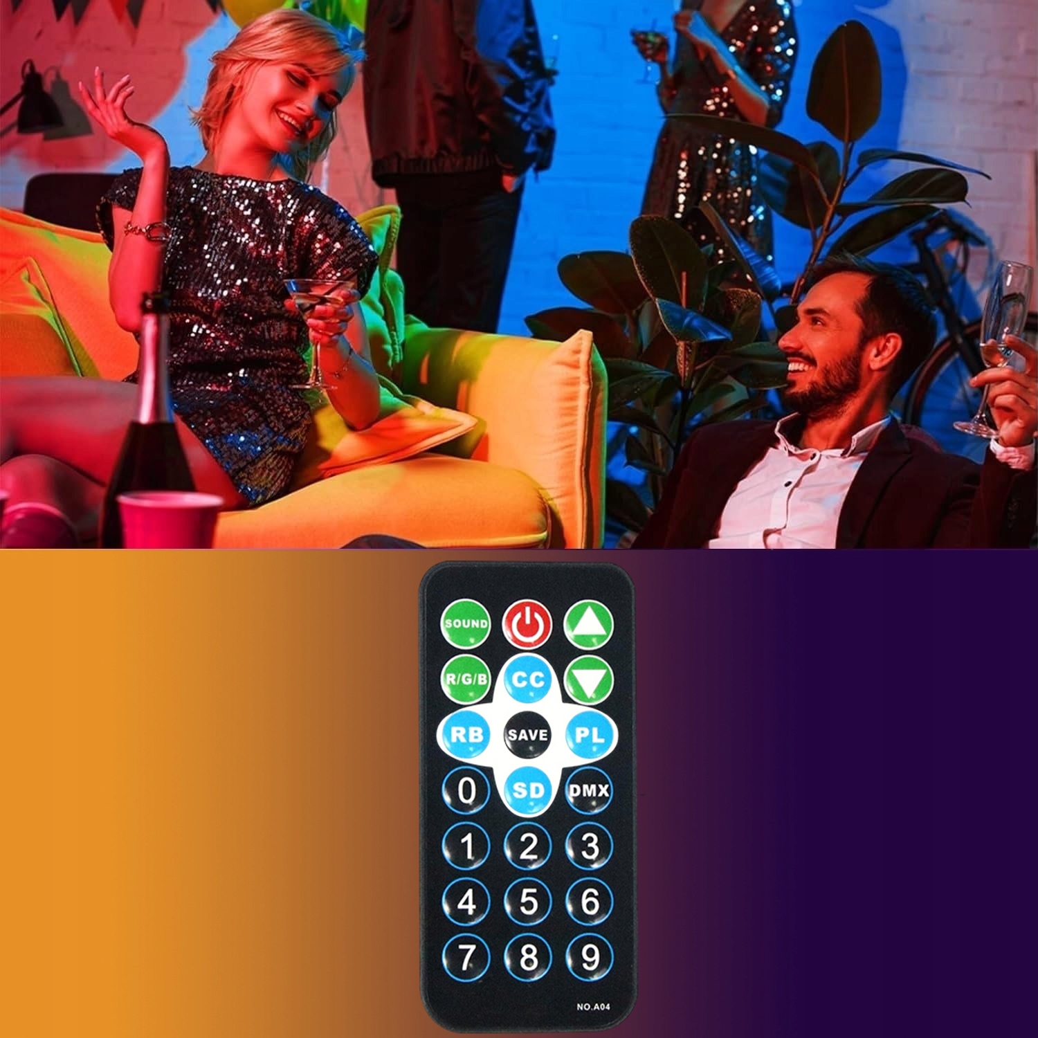 REFLEKTOR PROJEKTOR DYSKOTEKOWY KOLOROFON PAR LED LAMPA DISCO RGBW + PILOT