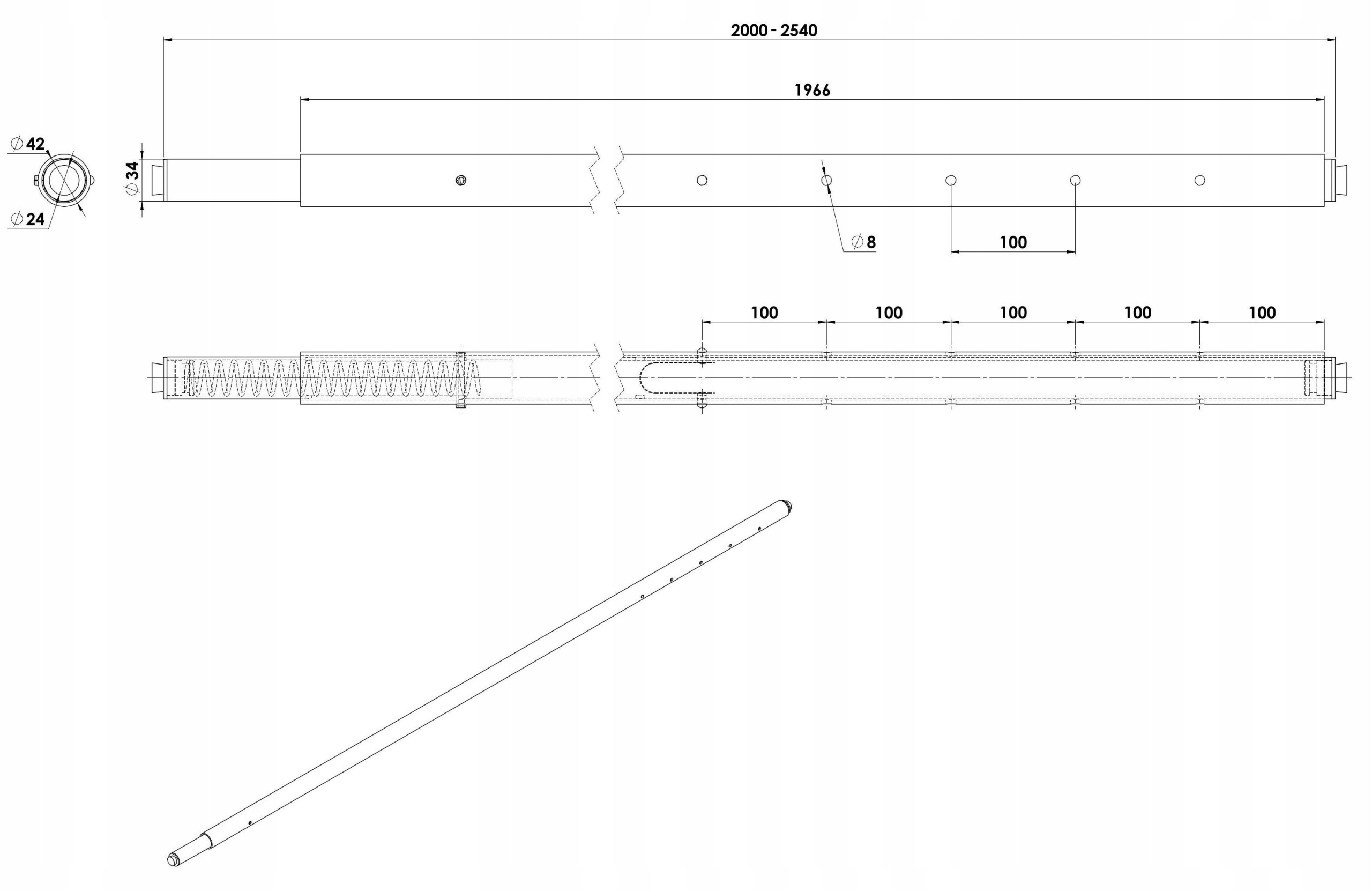 adjustable length: 2000 - 2540 mm