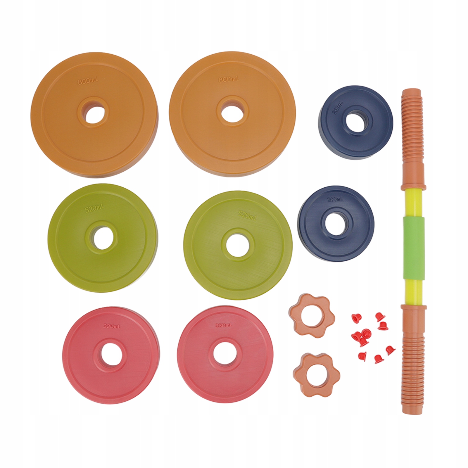 2. Варево -песок и вода: Детские игрушки с гантелями могут быть поливают песком или водой для увеличения веса. Регулируемый и красочный набор гантелей.