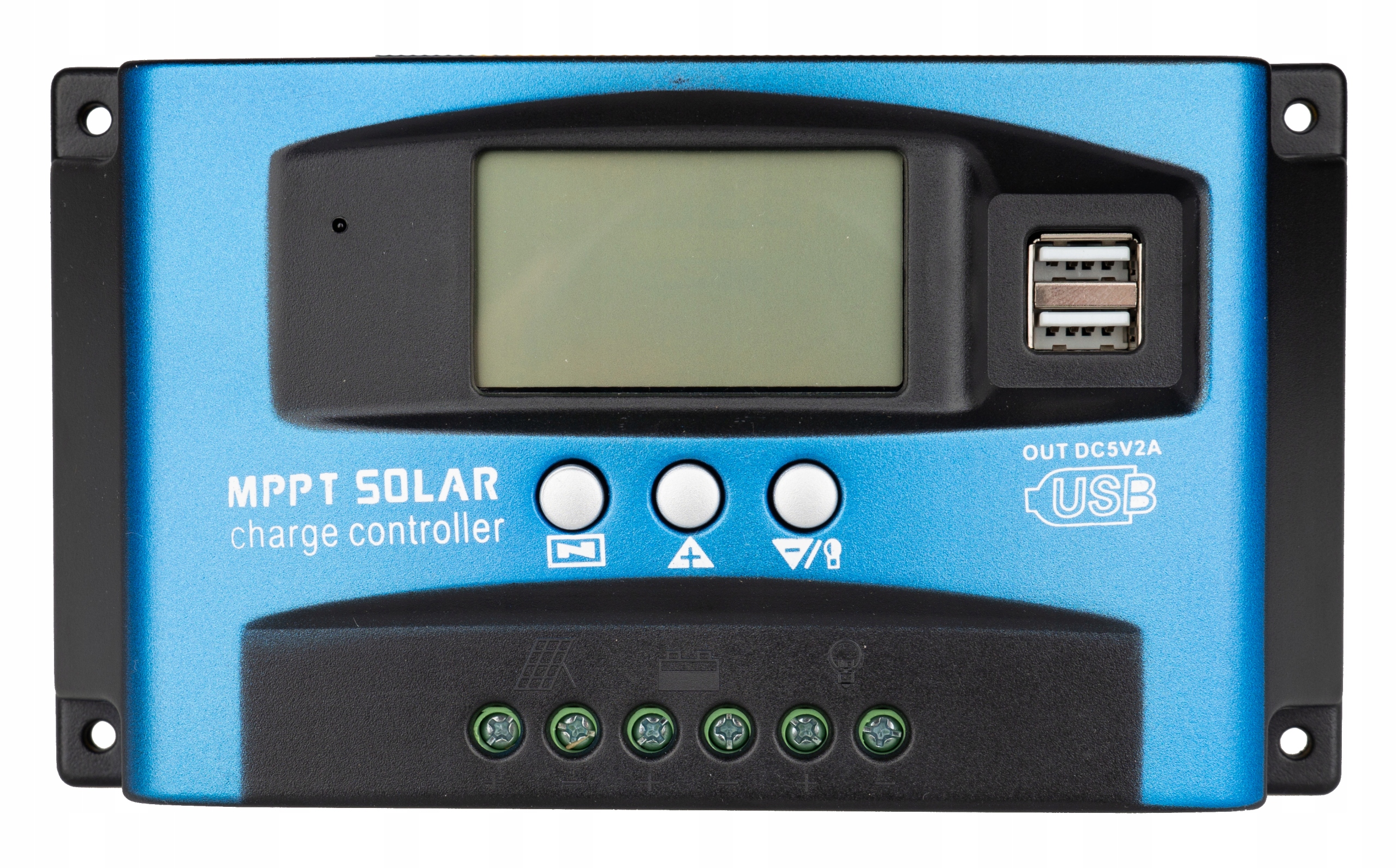 Солнечный регулятор и контроллер заряда для фотоэлектрических панелей 12/24 В с ЖК-дисплеем и портами USB.