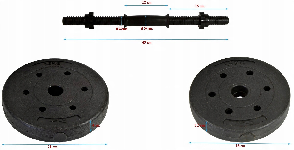 - Материал: АБС-пластик (ручка), бетон с пластиковым покрытием (вес), пластик (ручки, гайки) li>