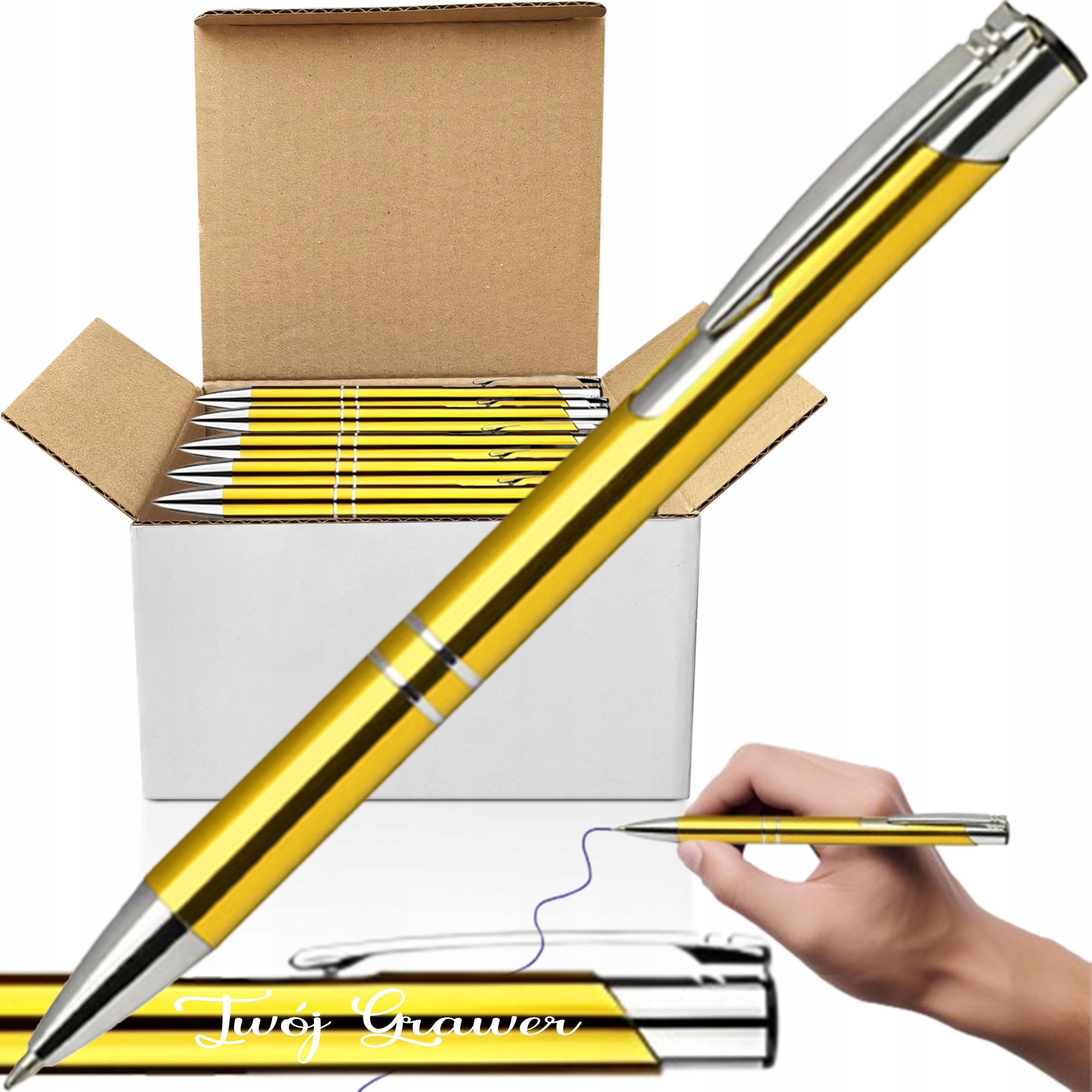 РЕКЛАМНІ РУЧКИ З ВАШИМ ВЛАСНИМ ЛОГОТИПОМ, ЖОВТІ, НАБІР 100 ШТ.