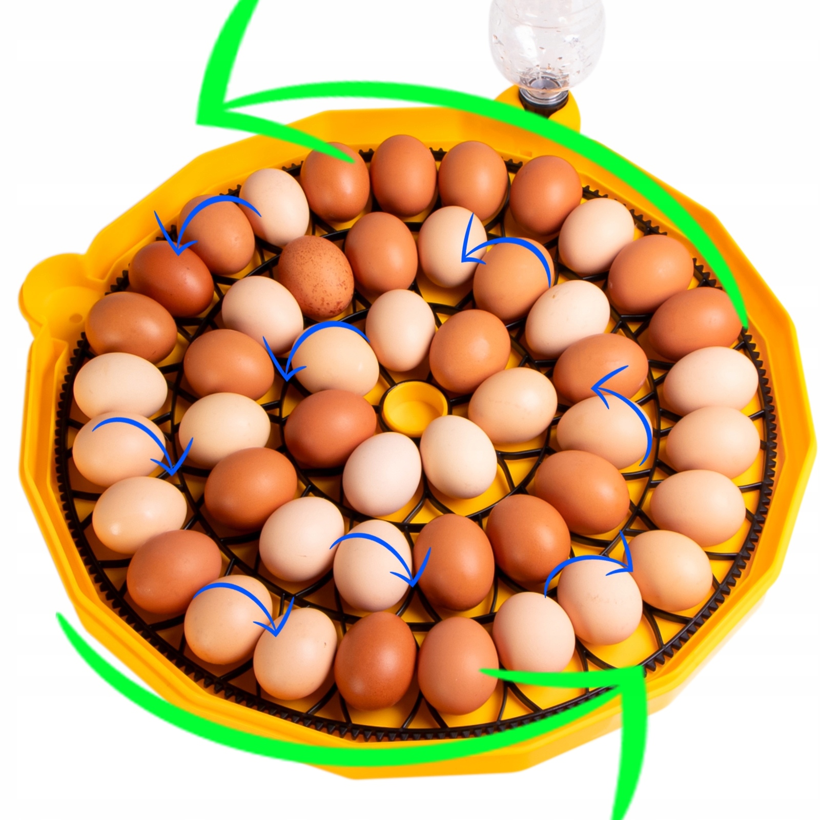 Инкубаторий оснащен встроенным двигателем, который будет перемещать решетку внутри. контейнер. Таким образом яйца будут вращаться. Автоматическое вращение длится 10–15 секунд и включается каждые два часа.