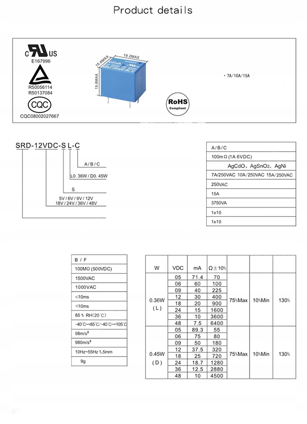 Контактное реле - SRA-12VDC-SL-C - производства SONGLE, со следующими параметрами: