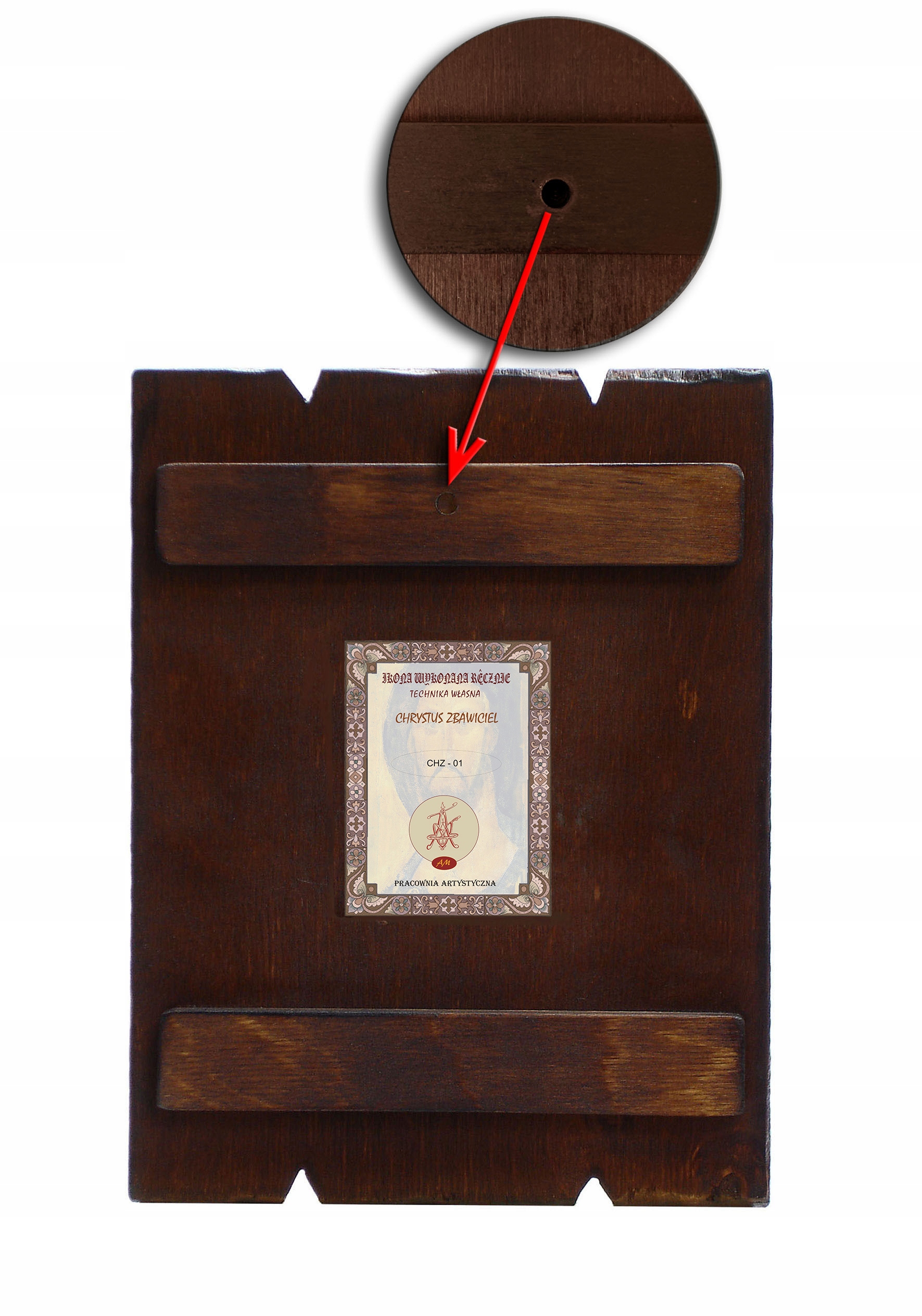 - просверленное отверстие сзади для подвешивания иконы. li>