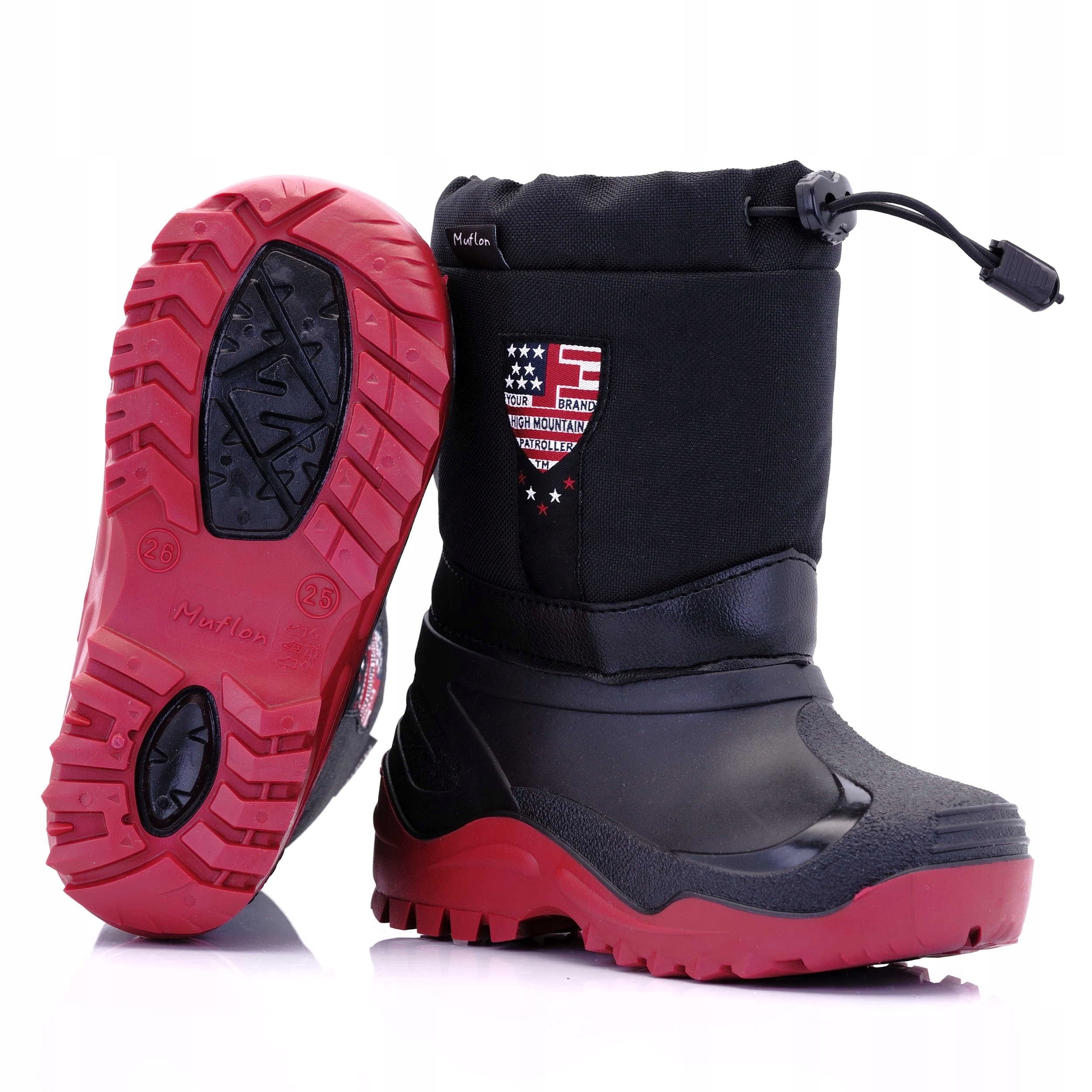 Очень теплые детские зимние ботинки от польской компании MUFLON. Изготовлены из качественных материалов. Верх выполнен из водонепроницаемого нейлона со съемным воротником, предотвращающим попадание воды и снега внутрь. Обувь утеплена изнутри 100% натуральной шерстью. Имеют утепляющую вставку из перфорированной алюминиевой фольги, окруженную сверху и снизу нетканым материалом, благодаря чему сохраняют отличные теплоизоляционные свойства.