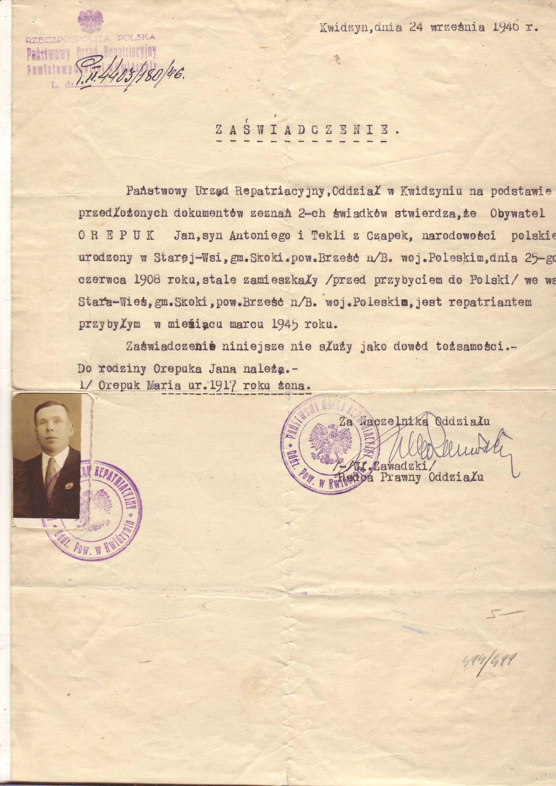 Репатріаційна довідка від 1946 року