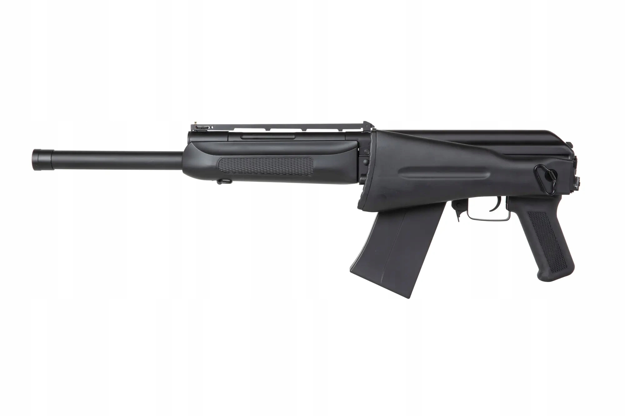 Первая в мире заводская электрическая копия русской полуавтоматической Saiga-12. Знаменитый дробовик, известный из игр мин. Escape от Таркова, Battlefield 3, а также в фильмах «Закрытие» и геймер. Сайга также очень популярен среди конкурентоспособных спортивных стрелков, российских полицейских подразделений и вооруженных сил в качестве оружия против беспилотников.