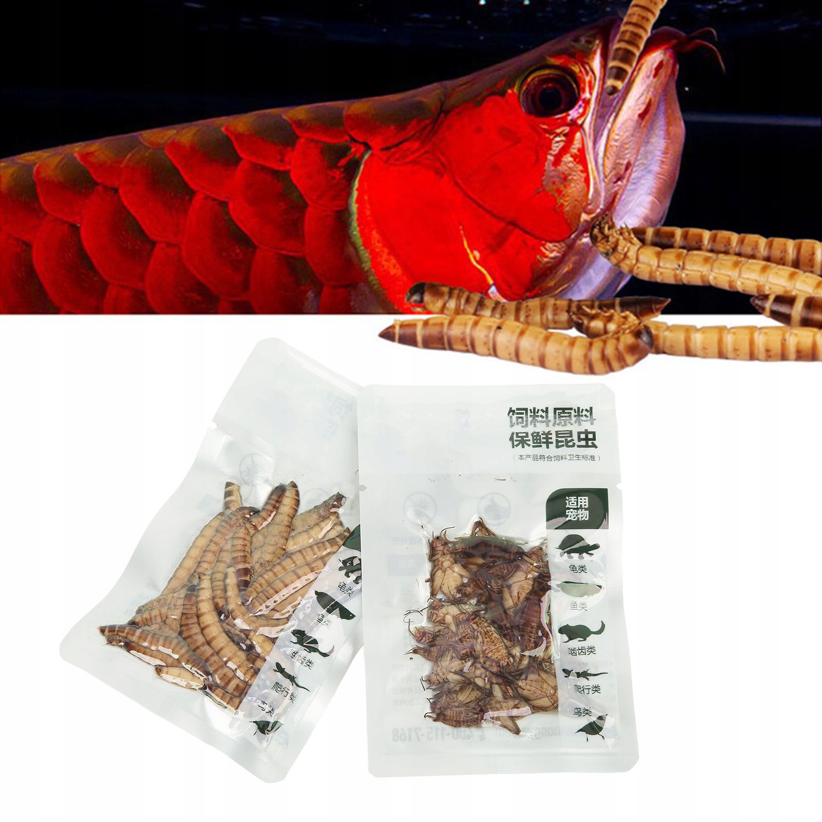 5. Легкое питание: Педанные черви пища хранится в алюминиевой фольге с освещением, откройте сумку и кормить, не касаясь ее (рекомендуется использовать все сразу, их следует спуститься, если вы не можете его кормить).