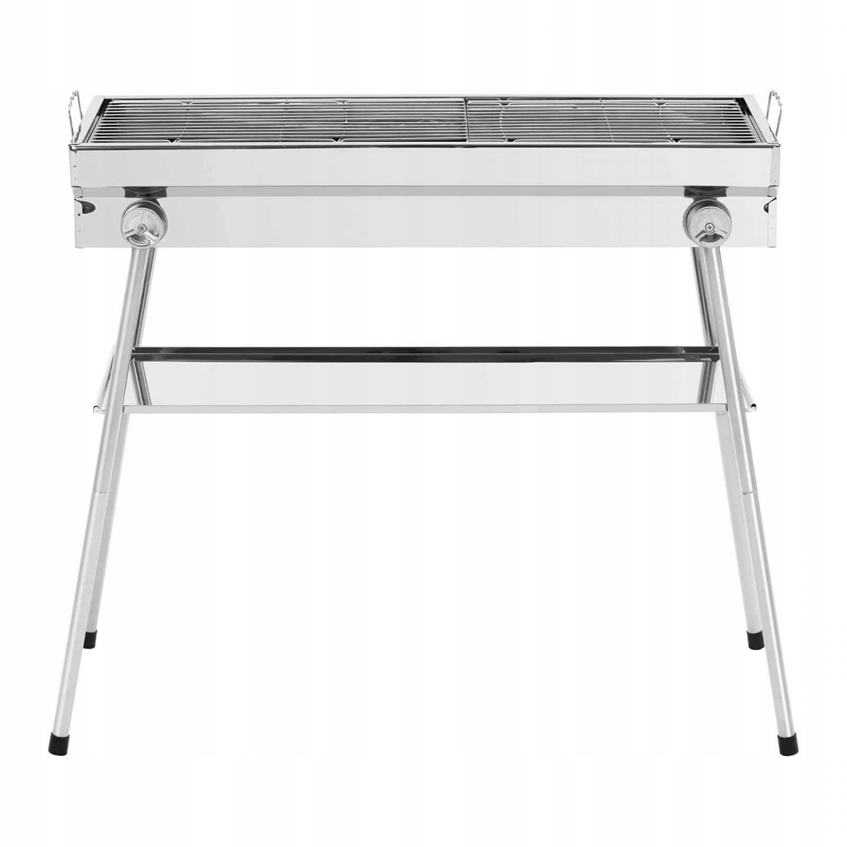 Конструкция надежно стоит на 4 ножках из прочной нержавеющей стали. Они дополнены пластиковыми колпачками, обеспечивающими устойчивость. Ножки можно быстро разобрать и сложить, что облегчает транспортировку угольного гриля в выбранное место.