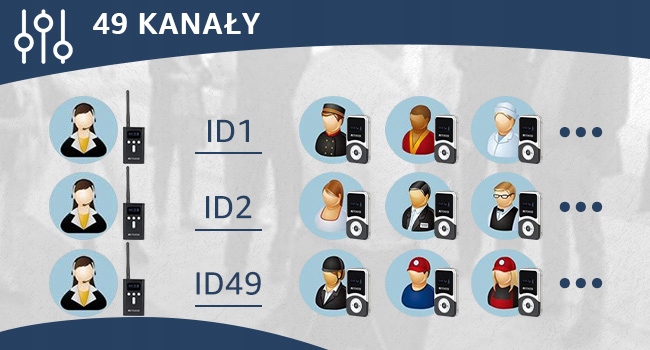 - 49 каналов по желанию; позволяет одновременно работать 49 группам в одном и том же месте в радиусе действия; используйте аудиосистему в шумной обстановке, не беспокоясь о влиянии других полос.